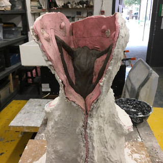 After plenty of discussions with my tutor and the technicians, I settled on creating a silicone mould with a jesmonite jacket. This sculpture is a lot more complicated in shape compared to the previously made portrait piece, so would need to require more thought in terms of the placement of shim walls.