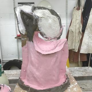 With the armature ready and a material plan in place, I started to pack out the sculpt with clay into its basic form - keeping in mind that the arms and neck onwards may need to be sculpted separately and not casted. Below I've documented the process through to the mould making, ready to be casted in resin.