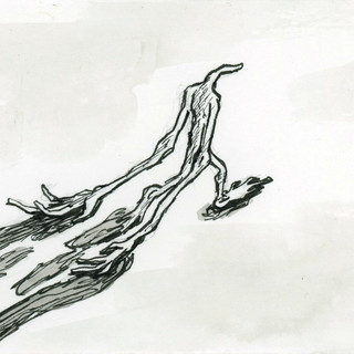 It was during this time that I had a vision of two alternate worlds, one with a black and white sky, and white/grey land, the other with a burning red sky accompanied by black land. The red sky idea was inspired by Jodorowsky's vision for his unmade adaptation of Dune. He spoke of this glaring blue sky in his own storyboard, so I decided to use the colour red from my black, red and white schemed illustrative work.